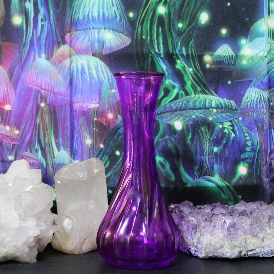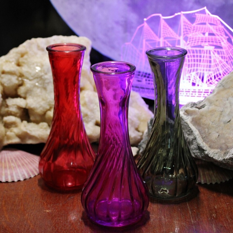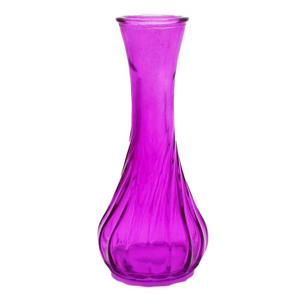 Purple/ Pink/ Fuchsia Colored Twisted Glass Vase H = 6 Inch in Vintage Style