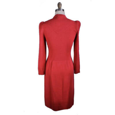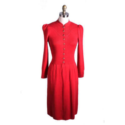 St. John Knit Vintage Red Wool Knit Dress 1970s S-M Amazing Buttons