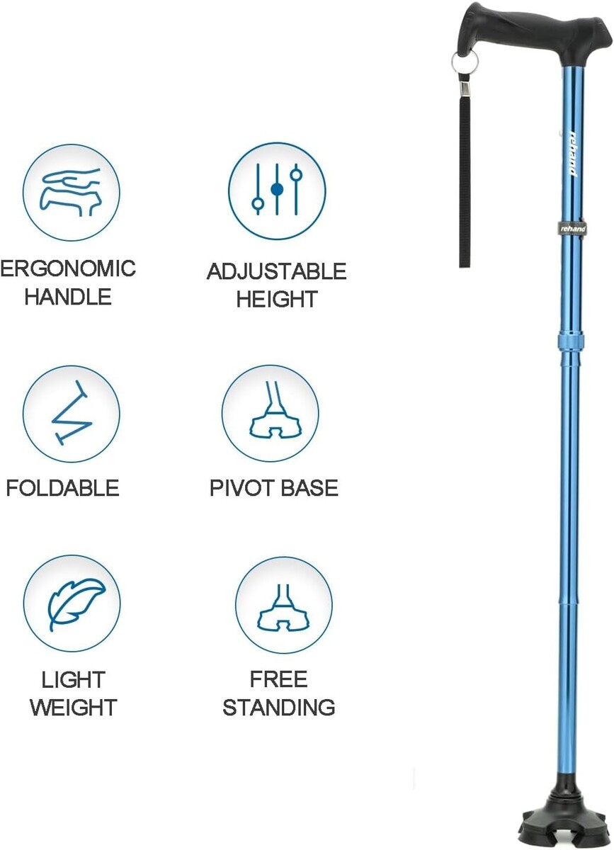 Features: Ergonomic,Foldable,Lightweight,Pivoting Tip,Shock Absorption,Storage Compartment,Adjustable,Self Standing