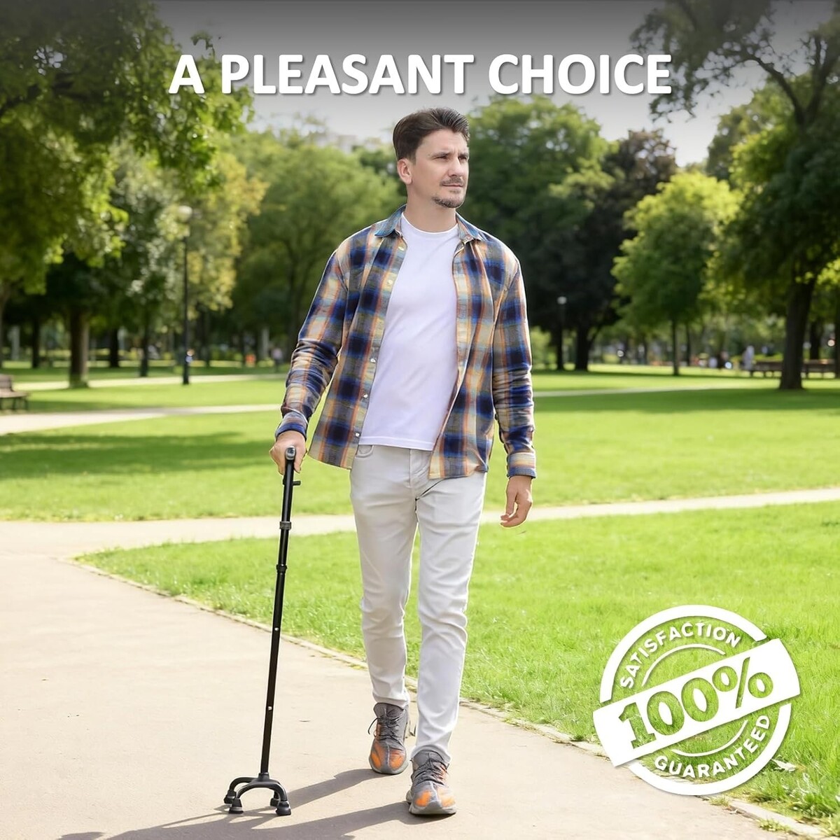 Sturdy Quad Base: Experience newfound elegance with our molded quad base design, crafted for optimal stability. The larger rubber foot pads enhance ground contact to ensure your safety while walking.