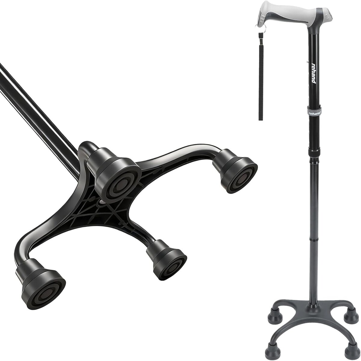 Natural Black Adjustable Quad Cane - Superior Support with Ergonomic Handle