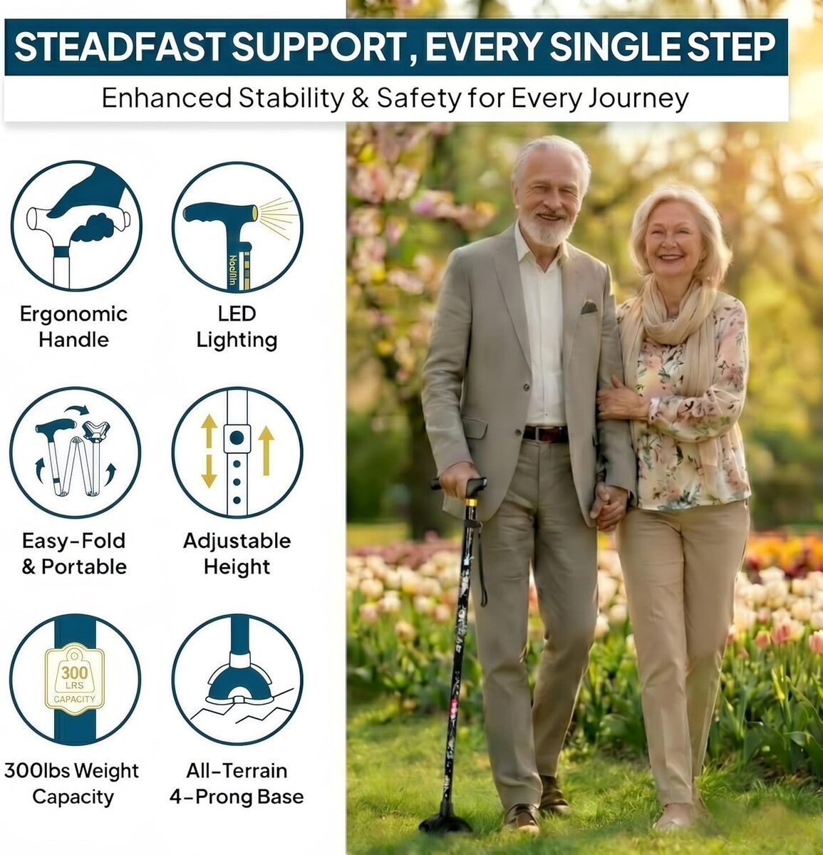 Enhance your mobility and independence; order your Portable Walking Cane today and step into a world of comfort and safety!