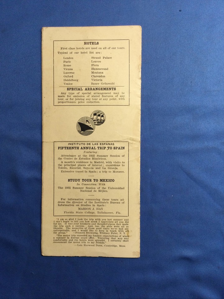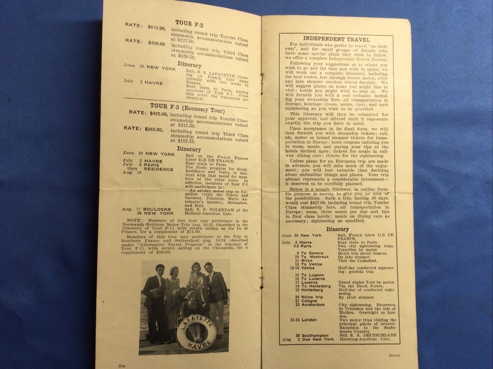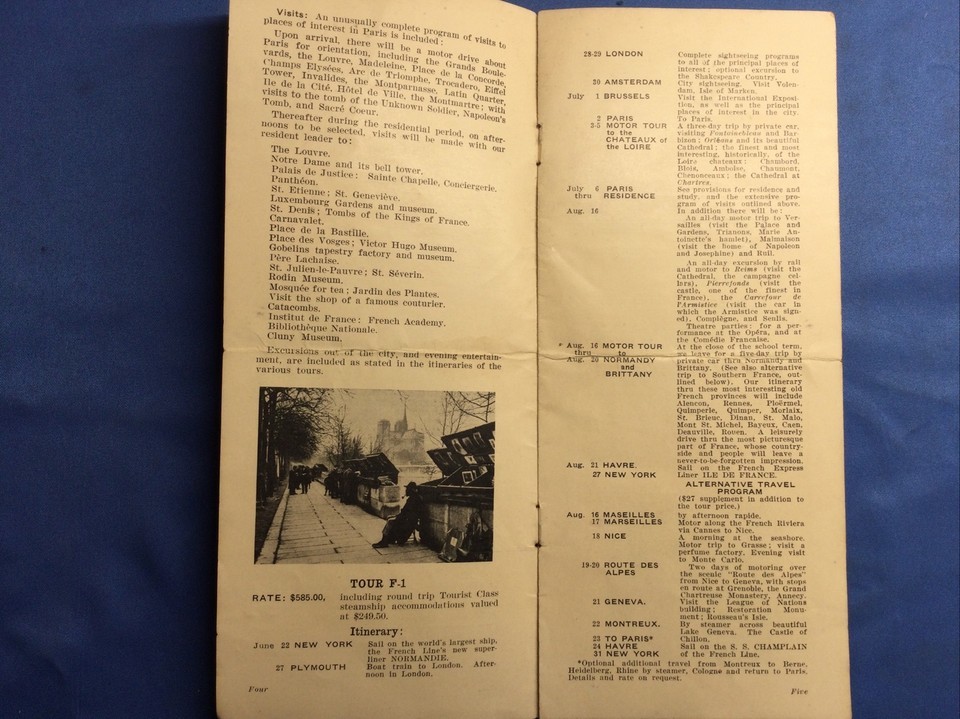 Vintage 1935 TOURS TO EUROPE & EUROPE BY MOTOR & RESIDENTIAL TOUR TO FRANCE