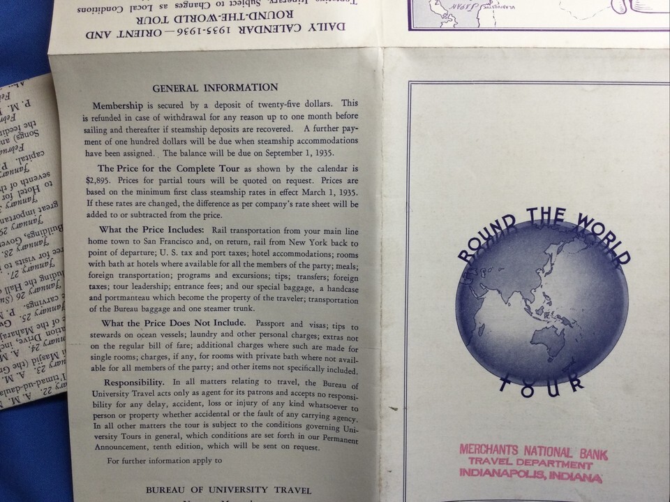 ROUND THE WORLD J. TOUR BUREAU OF UNIVERSITY TRAVEL 1935 - 1936 Brochure Guide