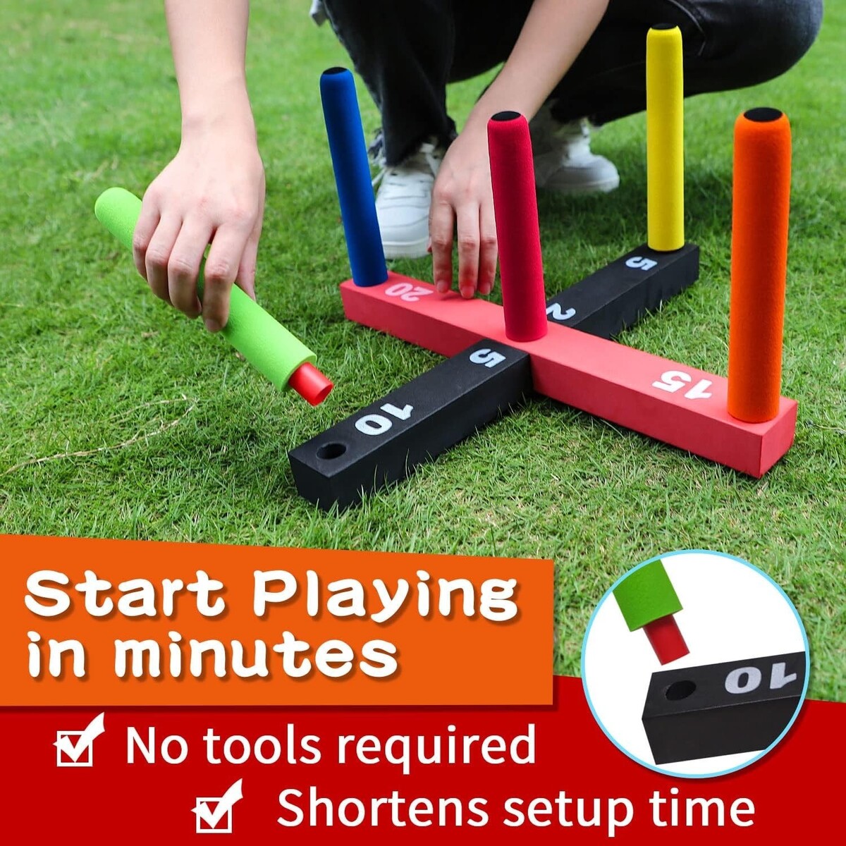 Includes 2 soft EVA foam bases with score markings for an engaging outdoor competition.