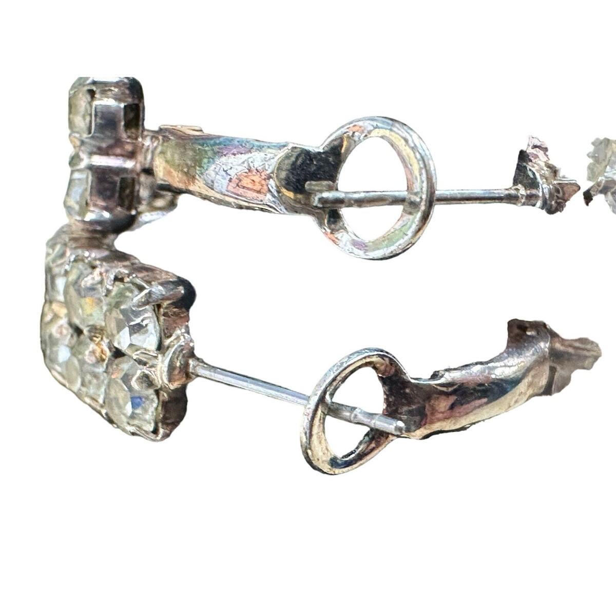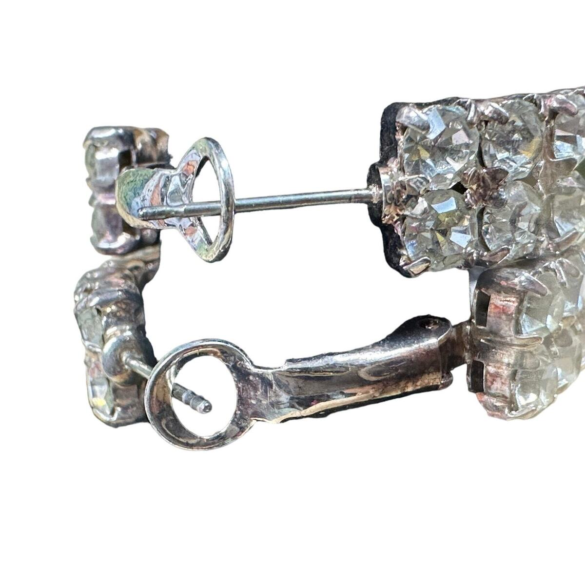 Vtg Hoop Earrings Statement double row crystals//pierced cocktail wedding 1.4"