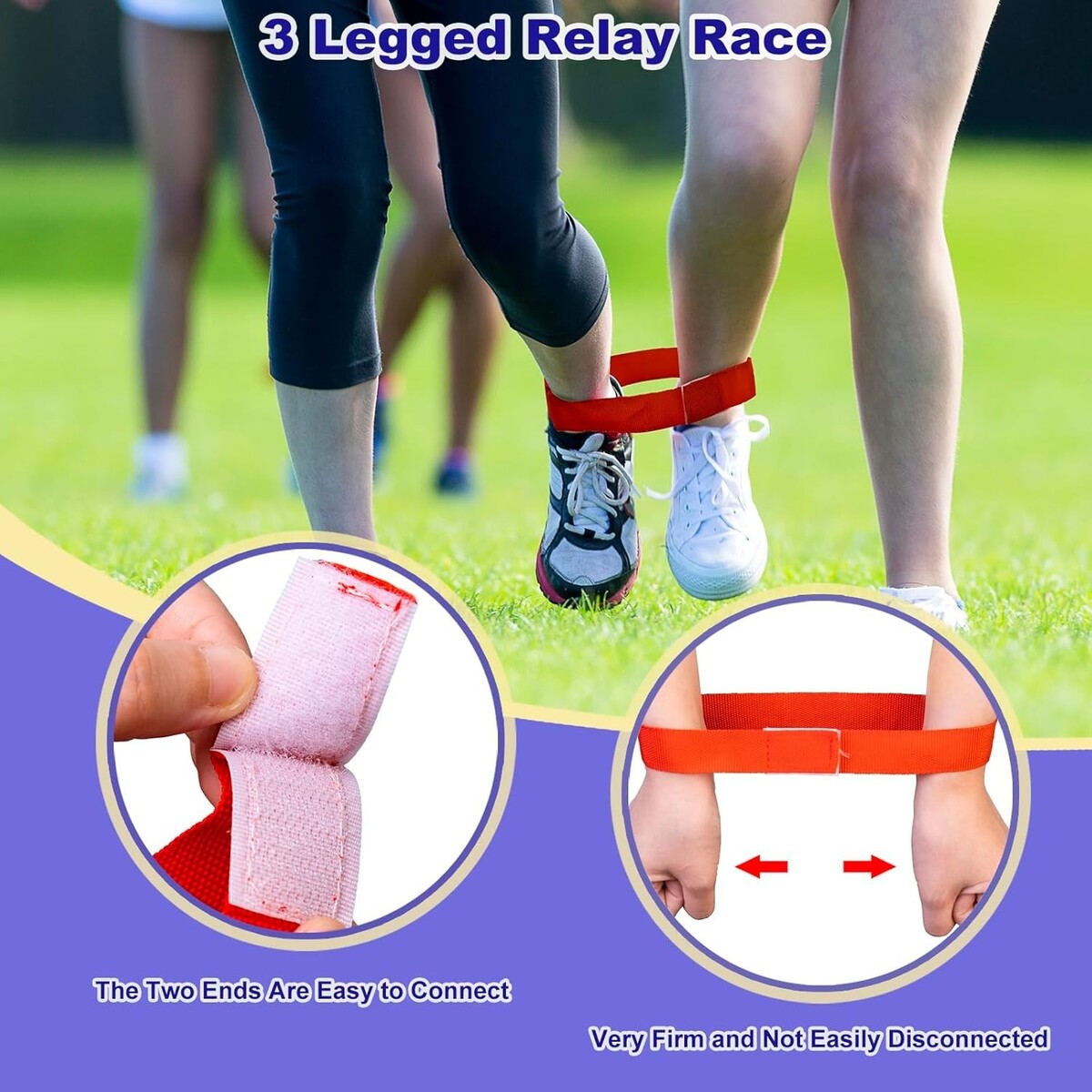 Set Includes: Potato Sack Race Bags,Bean Bags,Three-Legged Race Belts,Plastic Eggs,Spoons,Whistles,Plastic Medals