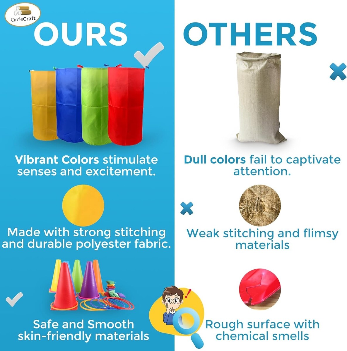 Crafted from durable polyester with strong stitching, our bean bags and potato sacks are built to withstand hours of running games and relay races. Enjoy peace of mind knowing every piece in this set meets safety standards, making it perfect for children and adults alike.