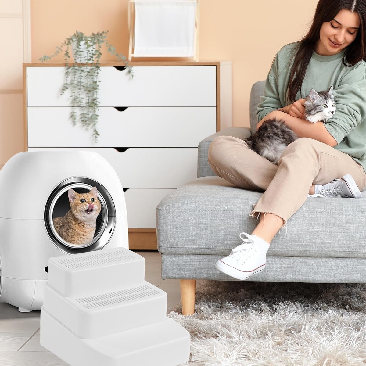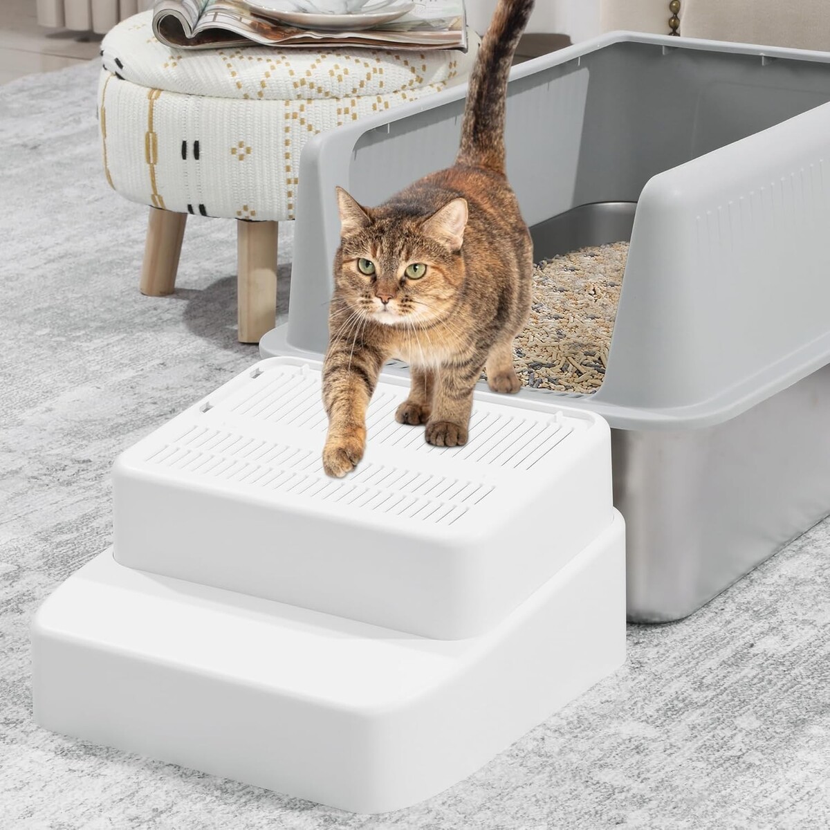 Sturdy Step: Allows easy access for your cat, filtering out litter residue from paws and claws.