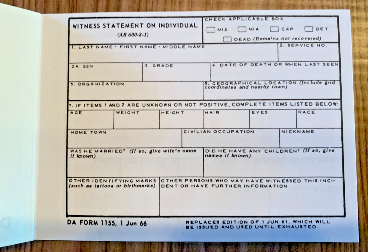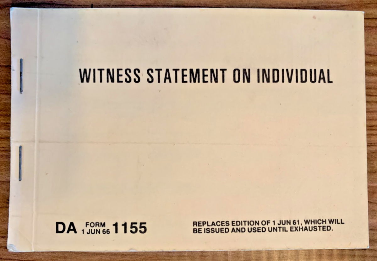 US Army, Witness Statement on Individual, Form M 1155, 1966 [e-12]