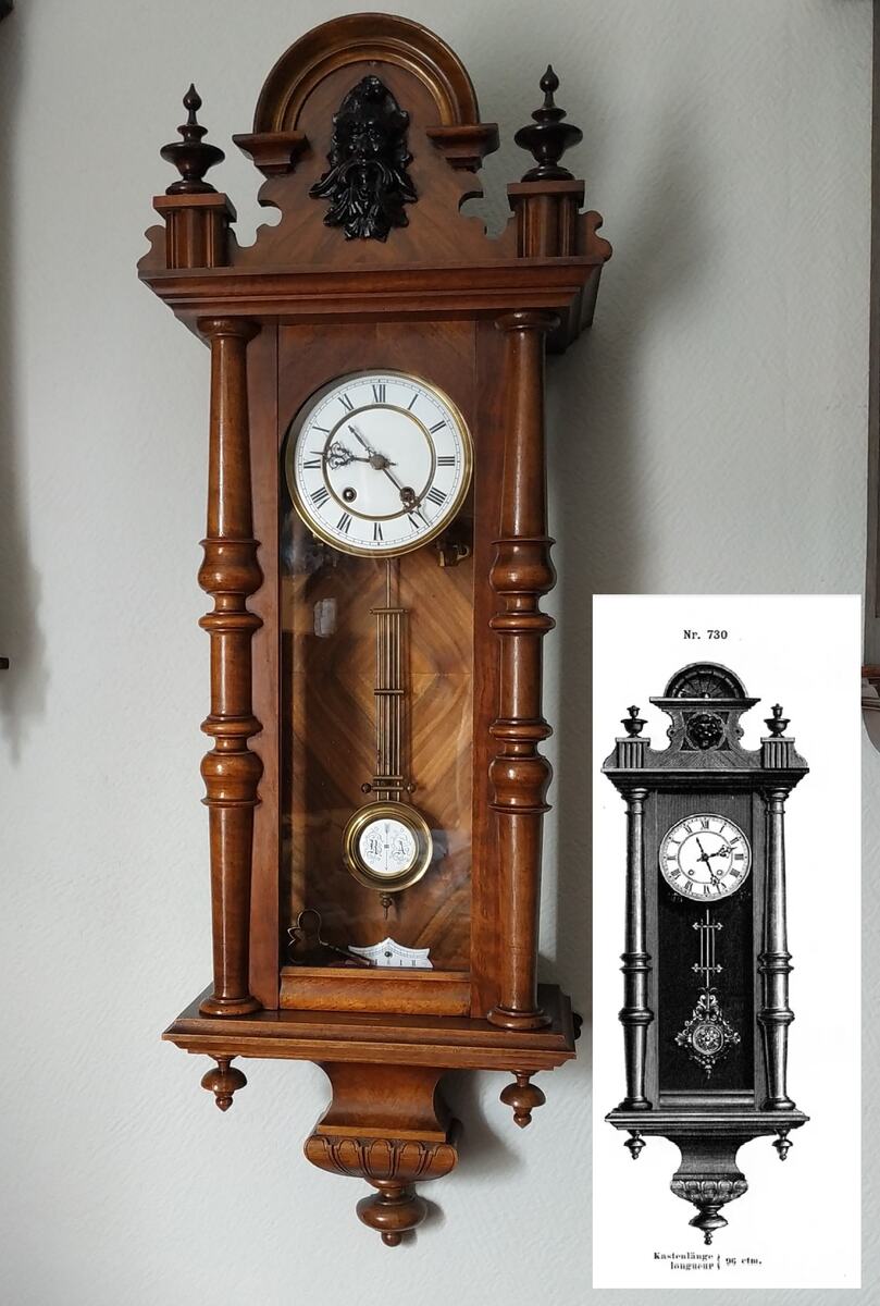1893 Antique German Wall Clock Lenzkirch Model 730 from the catalog of Lenzkirch Wood mechanical Regulator clock with pendulum
