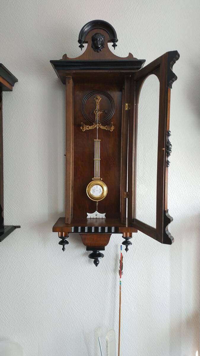 Circa 1887 Antique Vintage Mechanical Wooden Wall Clock Viennese Regulator