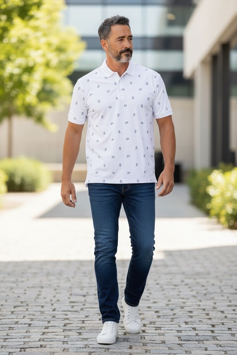 PERFECT 11 USA WHITE PALM TREE PRINT POLO