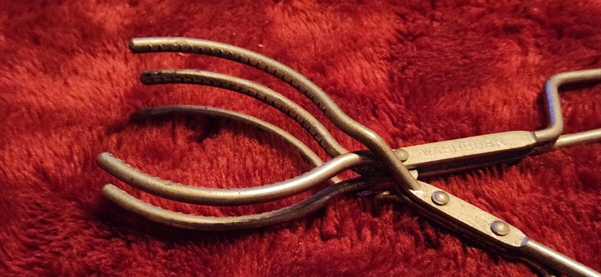 Good used condition curved fork tongs. Washburn. Approx 8.25 inches long.