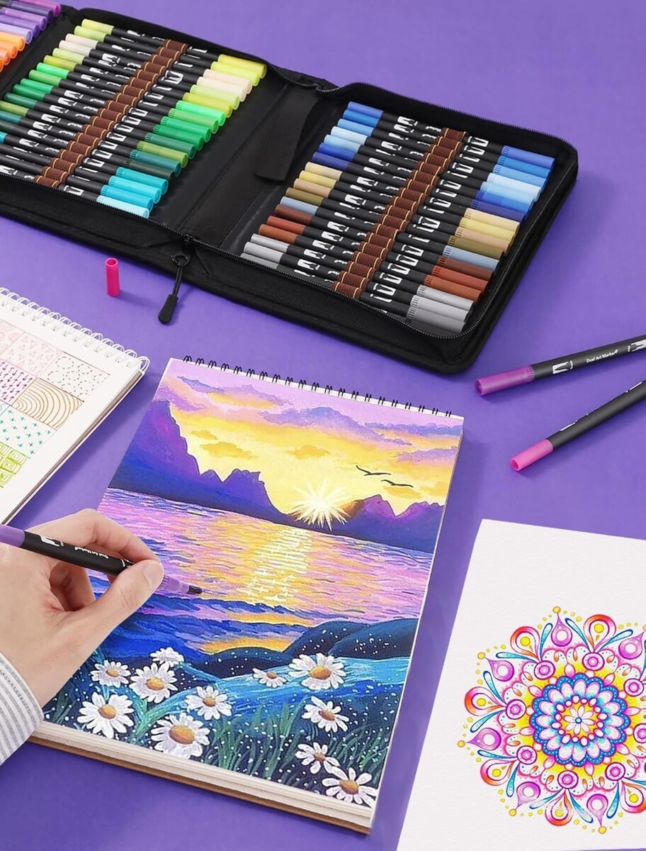 Experience the joy of artistic expression with a meticulously crafted marker set that suits your every need. From intricate designs in your adult coloring books to bold letters in hand lettering projects, our dual-tip markers give you the versatility to explore your creativity without limits. With 72 vibrant colors at your fingertips, you?ll never run out of inspiration.