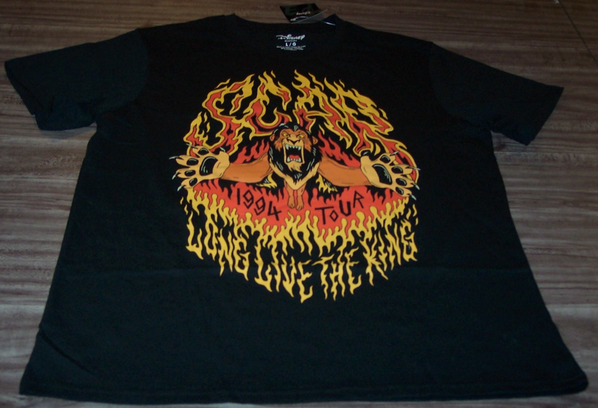 This is a WALT DISNEY THE LION KING SCAR 1994 Tour T-shirt. It is a size LARGE and it is NEW with the tag. It is 22 inches from armpit to armpit and 28 1/2 inches in length. Combine items to save on shipping. AD