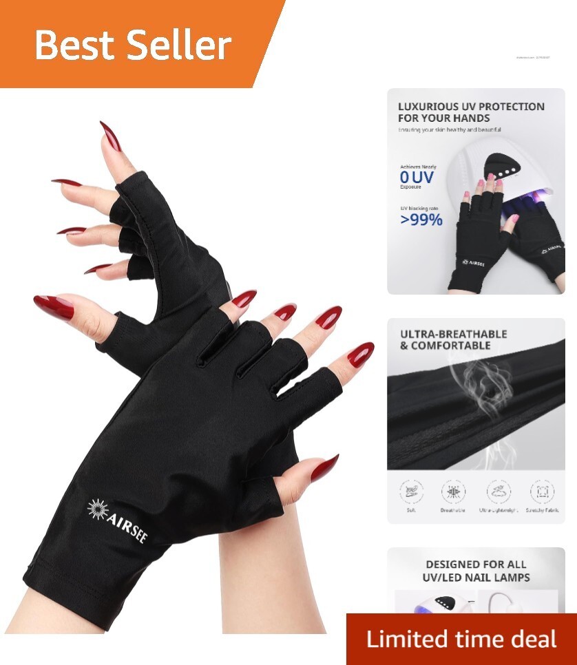 Black Fingerless UV Protective Gloves for Gel Manicures - Women's Ergonomic Fit