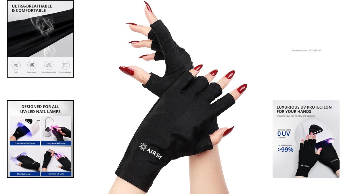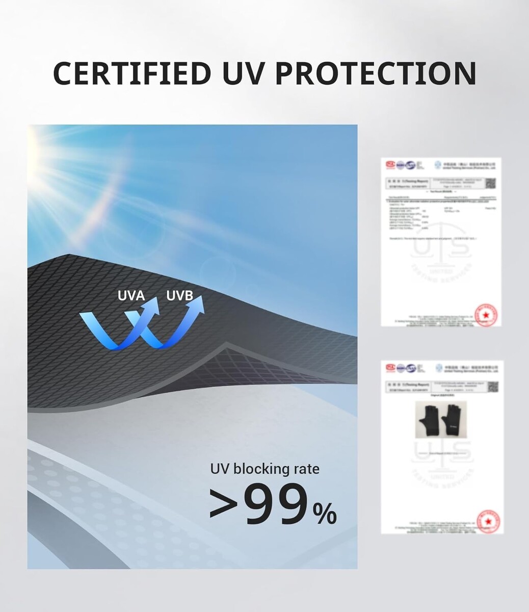 UPF50+ Certified UV Protection: The highest level of international standard certification (AATCC 183 certified), blocking 99% of UVA/UVB rays to safeguard your hands from UV nail lamps.