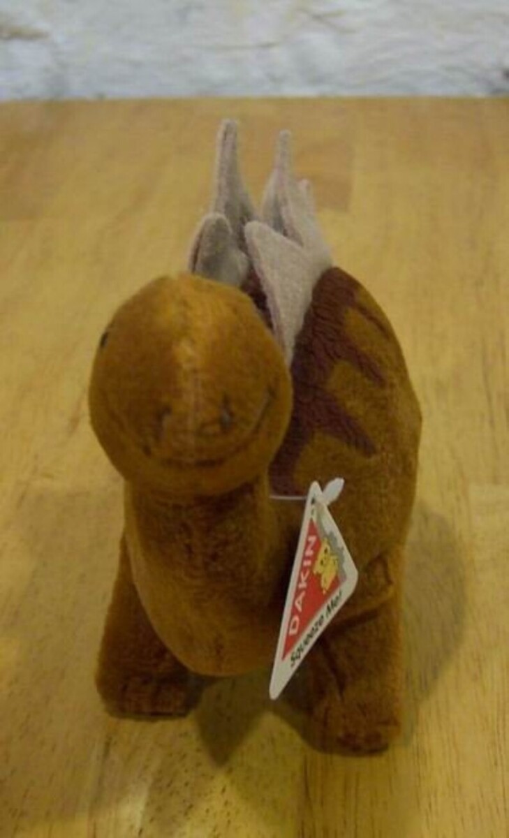 This is a Vintage STEGOSAURUS DINOSAUR W/ SOUND Plush Stuffed Animal Toy. Made by DAKIN. It is 5 1/2 inches tall and 9 inches long from front to back and it is NEW with the tag. Press the tummy and it roars. Combine auctions to save on shipping. Please contact me if you need to make other payment arrangements. EAG o