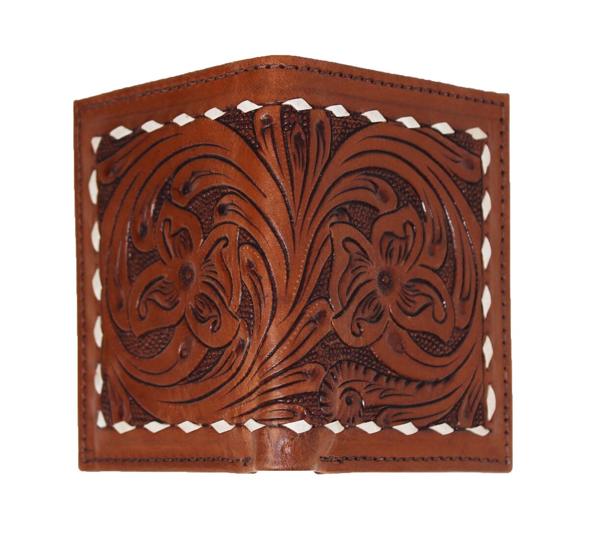 Men's Western Floral Tooled Buckstitch Handcrafted Leather Bi-Fold Wallet