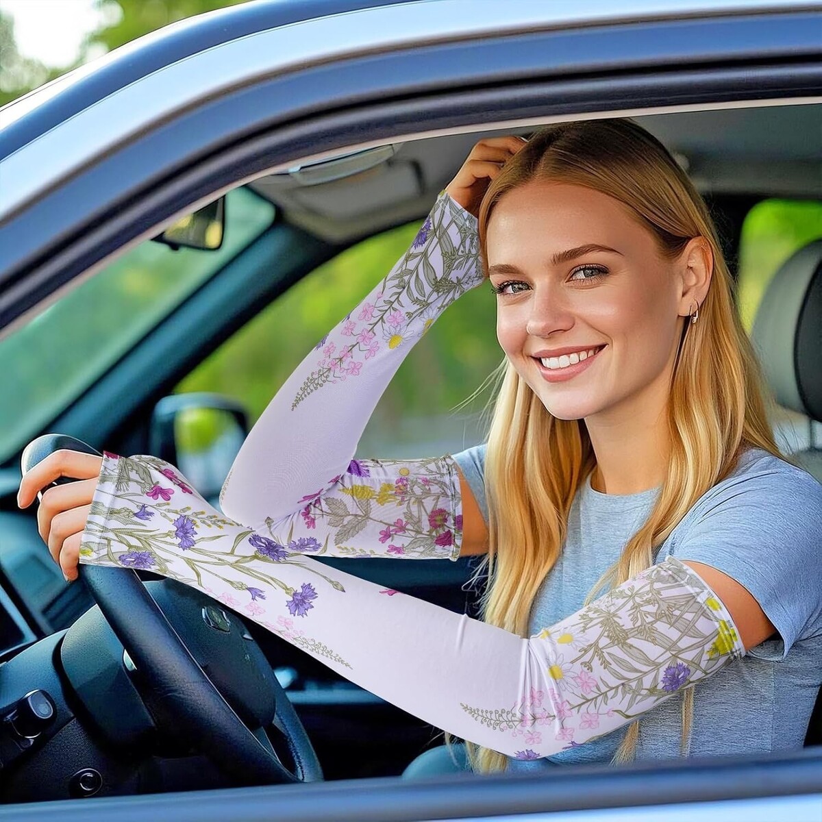 Cooling Arm Sleeves for Gardening - Breathable Sun Protection with Thumb Hole