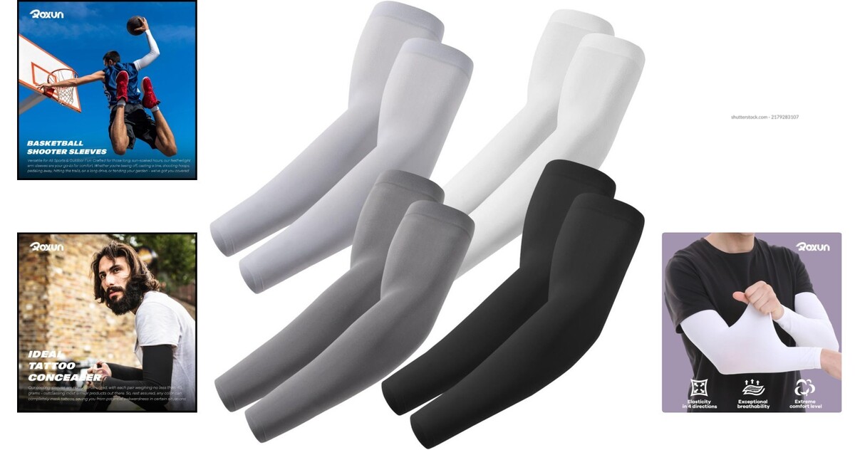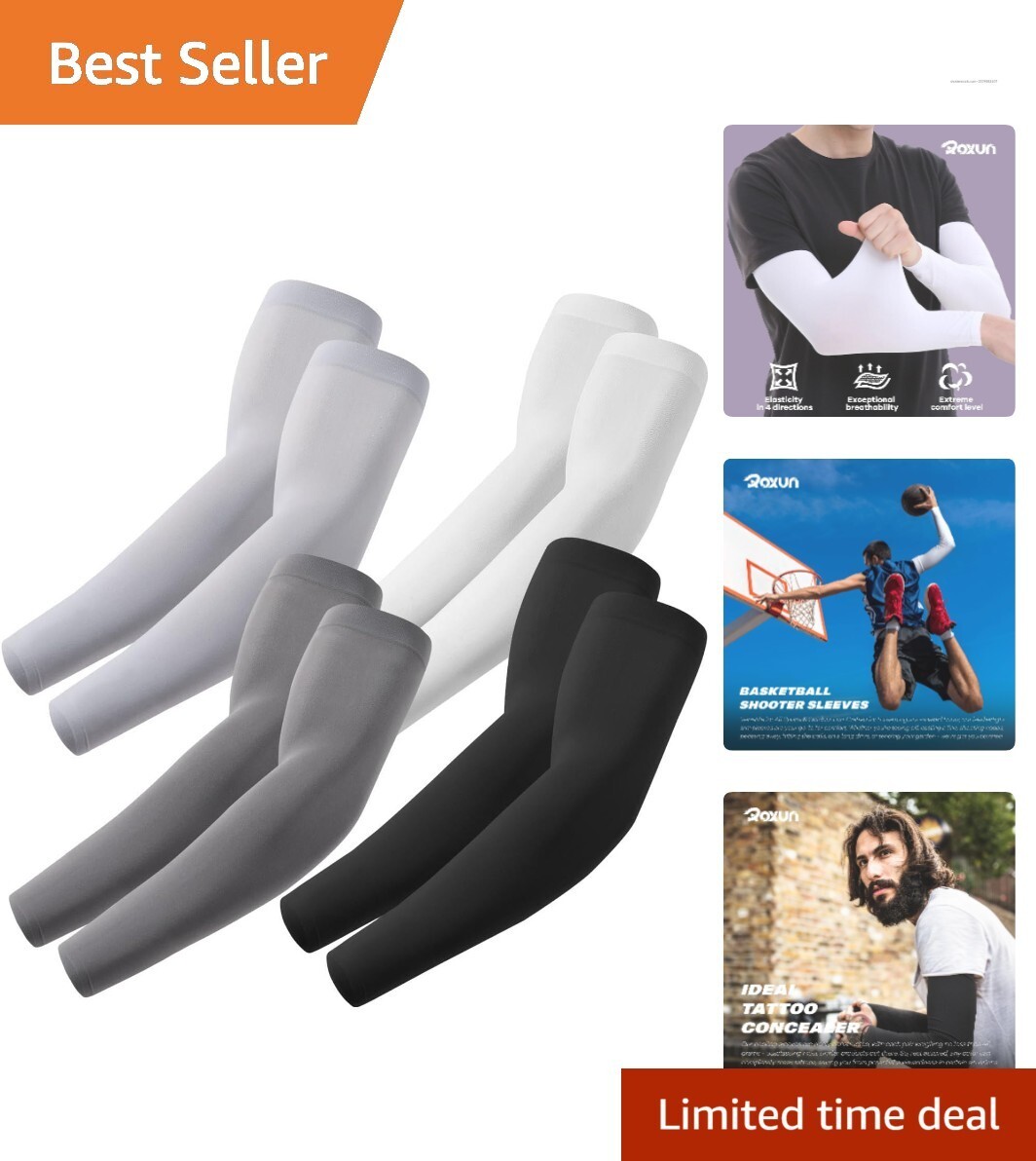 Athletic Compression Arm Sleeves – 4 Pairs with Tattoo Coverage & UV Shield