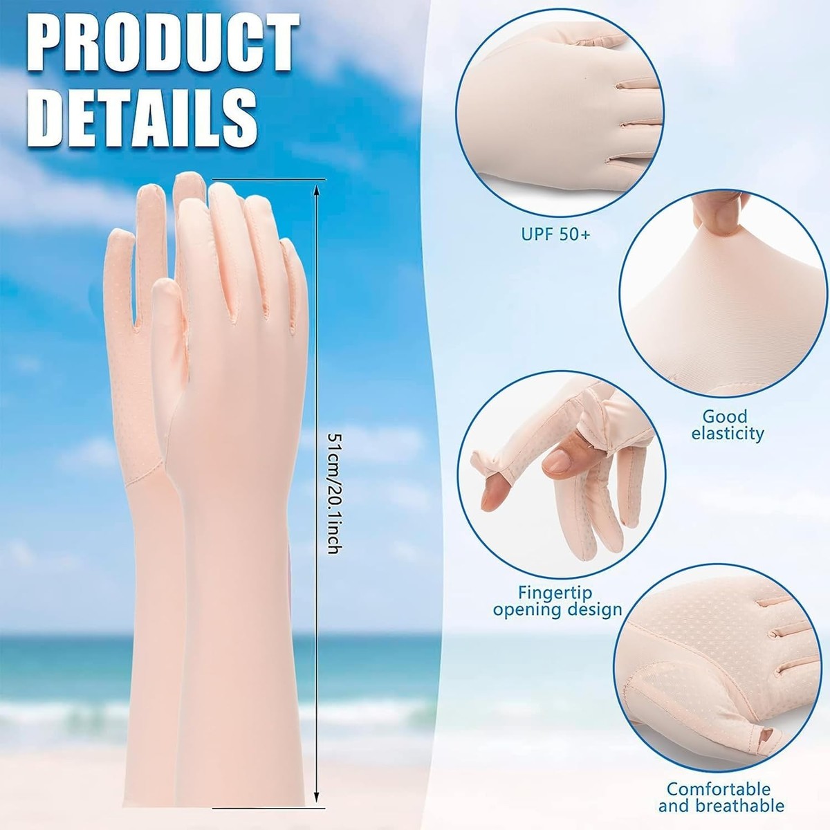Features: Breathable,UV Protection,Soft and Comfortable,Sun Protection,Stretchy,Touchscreen Friendly,Non-Slip