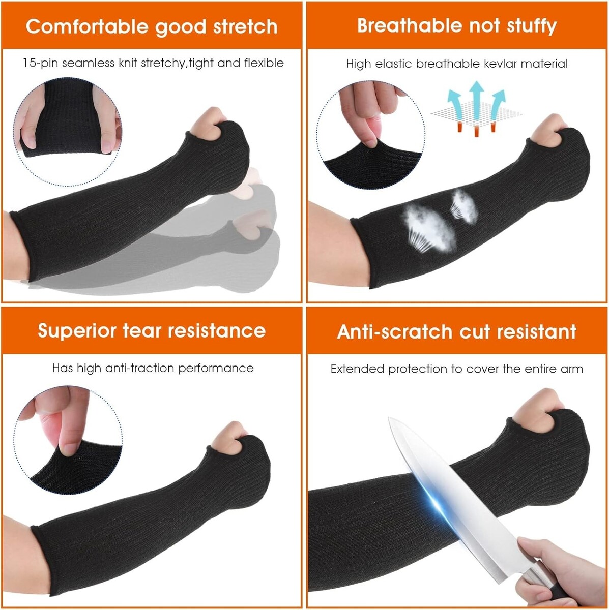 Features: Breathable,high performance,thumb hole design,ergonomic design,anti-cut sleeves,heat resistant,easy to wear,perfect fit,lightweight