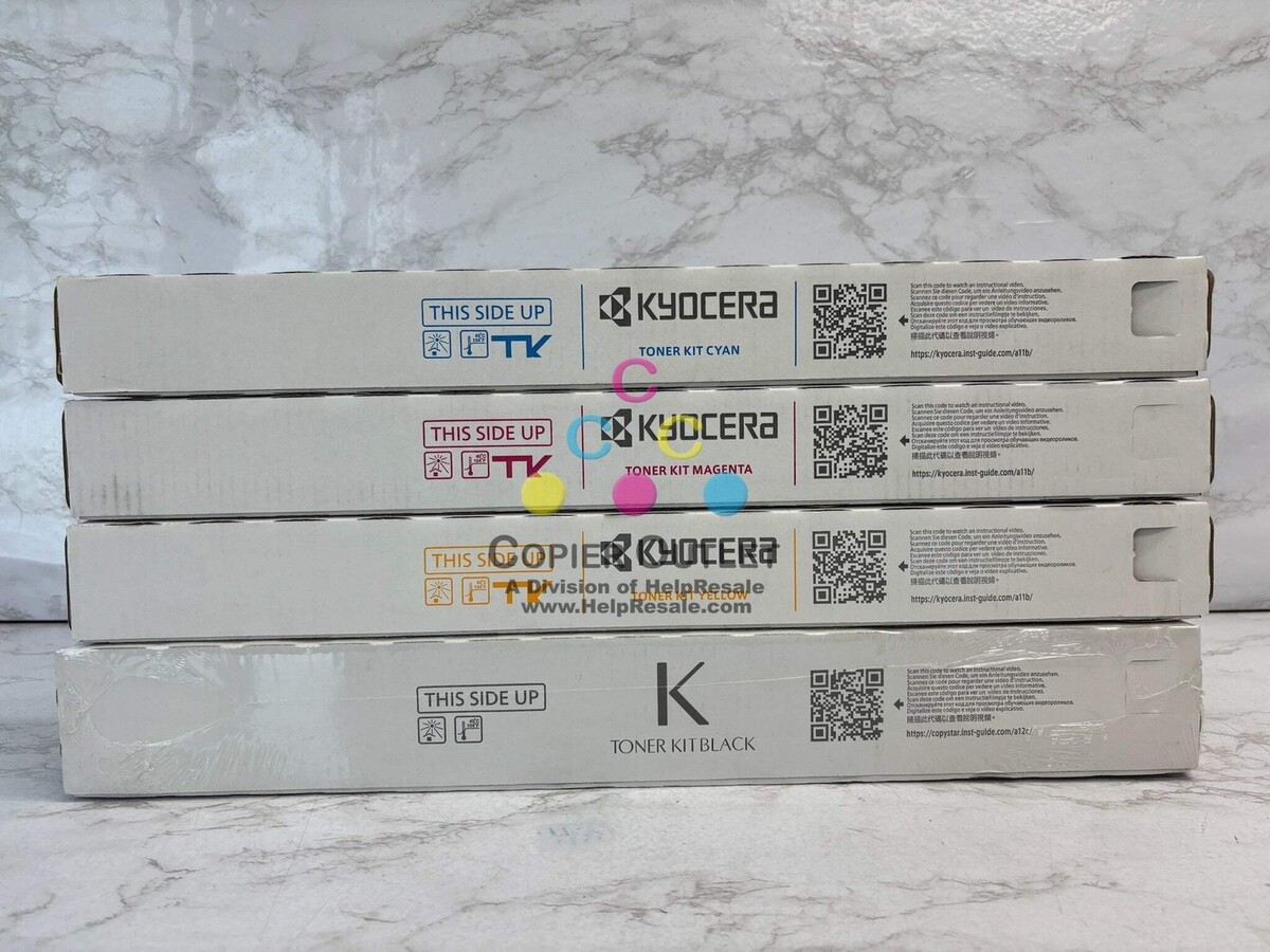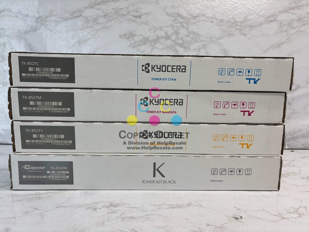 4 Genuine Kyocera / Copystar TK-8527CMY Toners and TK-8529K Black Toners New For Copystar CS3552ci, 3553ci, 4052ci, 4053ci TASKalfa 3552ci, 3553ci, 4052ci Listed by: Sheri (Sales Team) ?Nothing will work unless you do.? Maya Angelou (A positive moment brought to you by Help Resale) Copier Outlet (A Division of Help Resale) Copier Outlet was established in 1993. We buy and sell both domestically and internationally and have wide assortment of copiers, consumable and accessories of all popular brands. All of our copiers are in house and available for your inspection. They all have been tested and rated for functions, cosmetics and overall appearance. Our consumable and accessories selections include toners, imaging units, developers and copier parts such as fax board, fixing unit, fuser unit, roller, cleaning brush, drum blades and etc. For more detailed information on our copiers, consumables and accessories, please feel free to give us a call. We are more than happy to assist you with the pricing and guide you to find the copiers, consumable and accessories you wish to buy. Best Regards, Copier Outlet Sales Team Monday - Friday: 9:00 am to 5:00 pm (PST) Copier Outlet Promo Video - YouTube Video will open in a new windowUsing the App? Paste link into a browser window: [isdntekvideo] All product and company names are trademarks TM or registered trademarks of their respective holders. Use of them does not imply any affiliation with or endorsement by them.