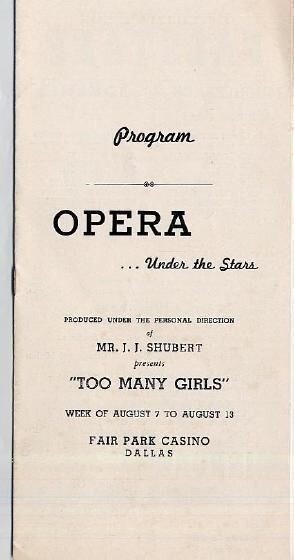 Opera Under the Stars TOO MANY GIRLS Program Fair Park Casino Dallas 1940's