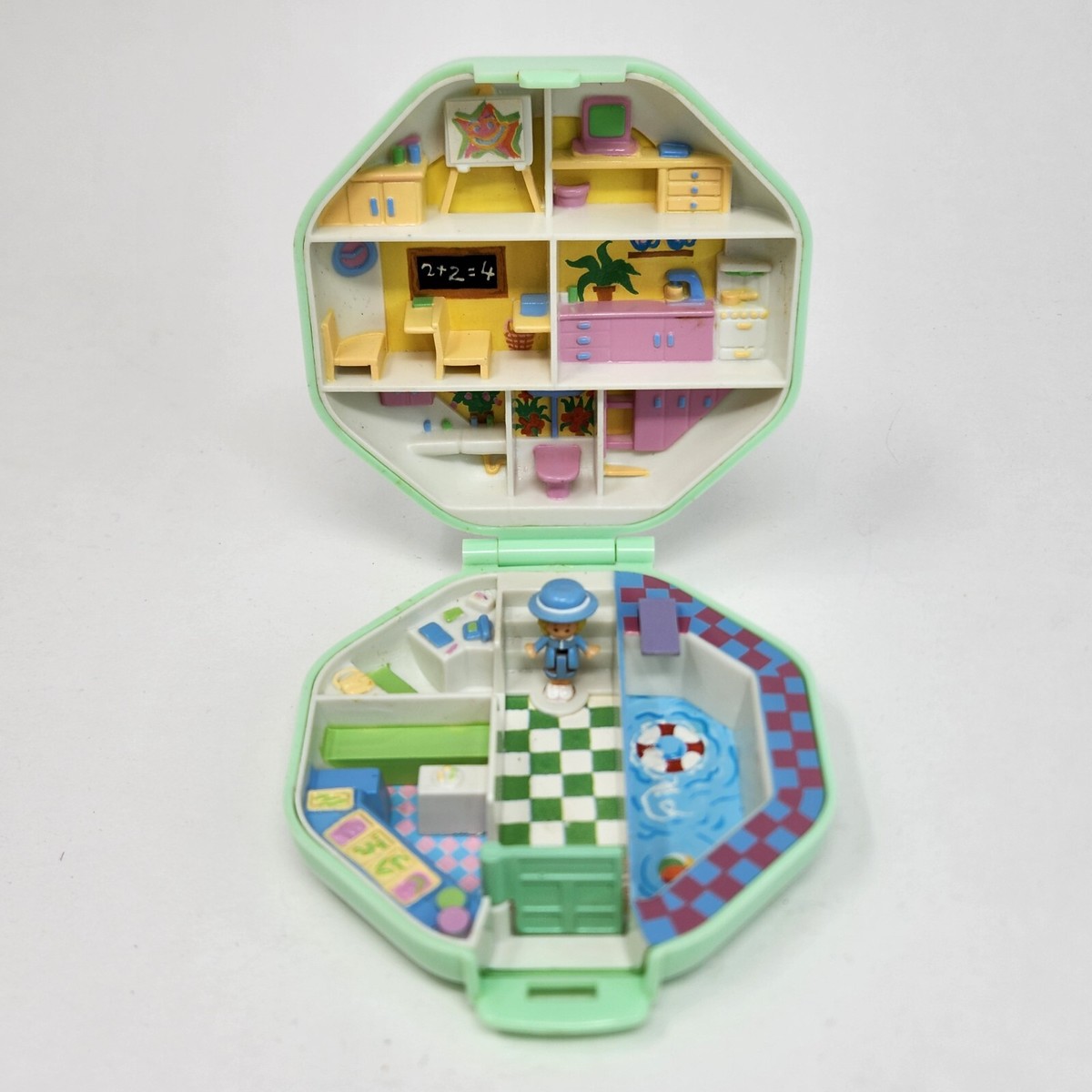 VINTAGE 1990 BLUEBIRD POLLY POCKET SCHOOL HOUSE PLAYSET MINT GREEN COMPACT TOY