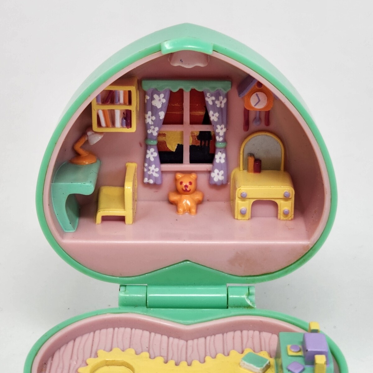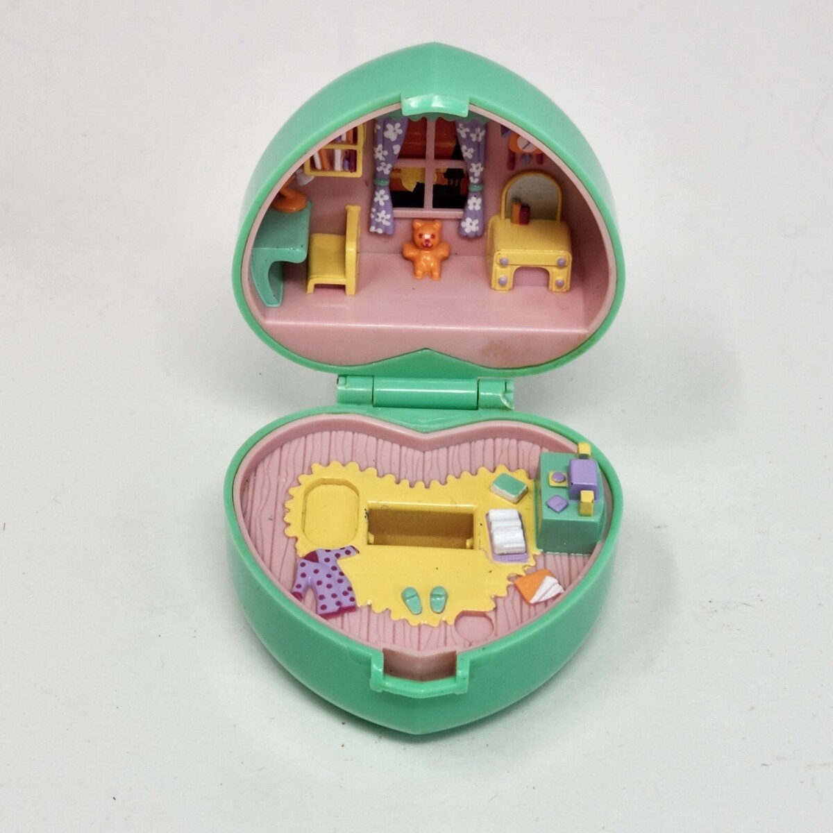 VINTAGE 1991 BLUEBIRD POLLY POCKET MIDGE'S BEDTIME RING COMPACT HEART PLAYSET