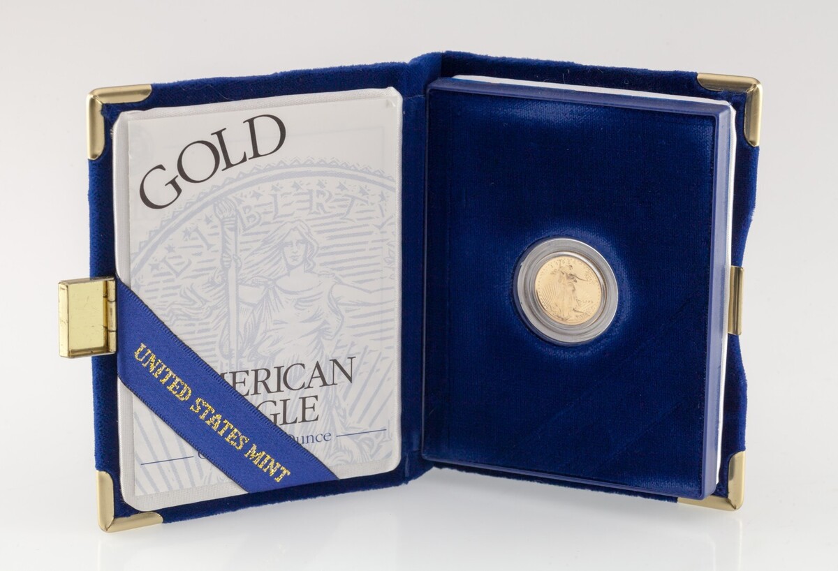 1999-W 1/10 Oz. Goldmünze American Eagle in Polierter Platte mit Etui und Echtheitszertifikat