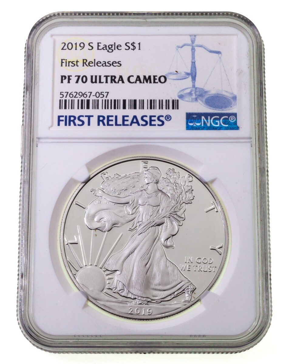 2019-S $1 Silver Eagle Valutato Da NGC Come PF70 Ultra Cameo Prime Rilasci