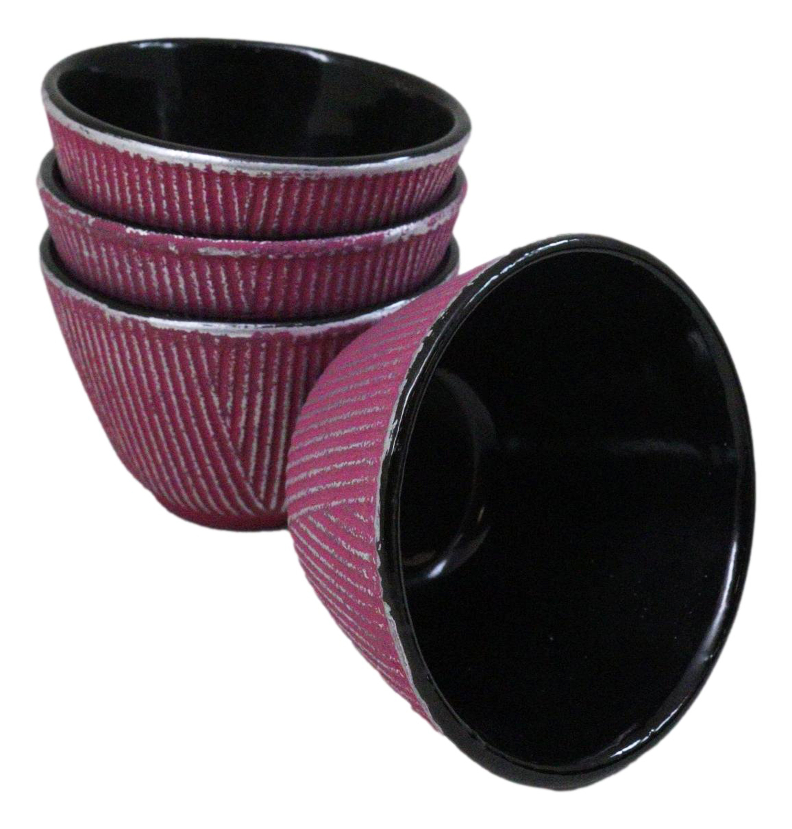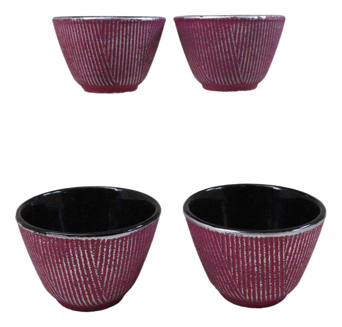 Pack Of 4 Magenta With Silver Hues Cast Iron Tetsubin Textured Tea Cups 3oz