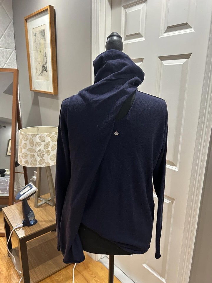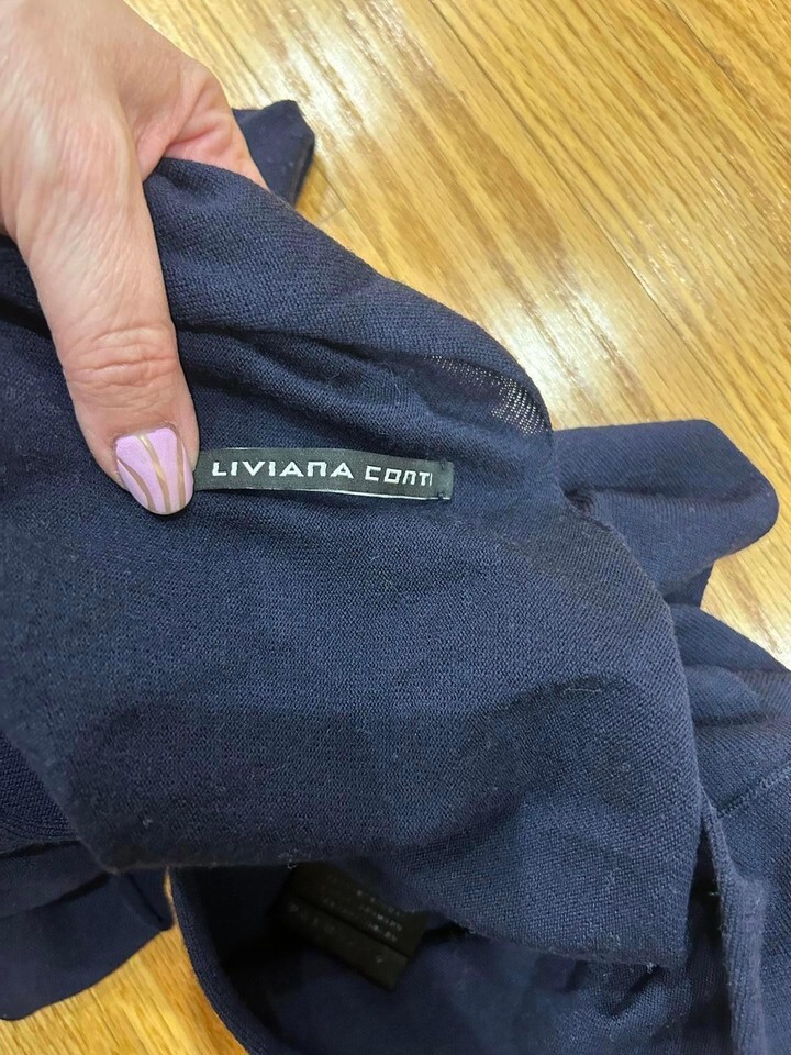 Liviana Conti Navy Blue Asymmetric Wrap Sweater
