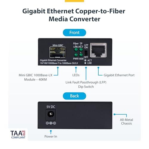 StarTech.com Gigabit Singlemode (SM) LC Fiber Media Converter, 10/100/1000 Mbps,