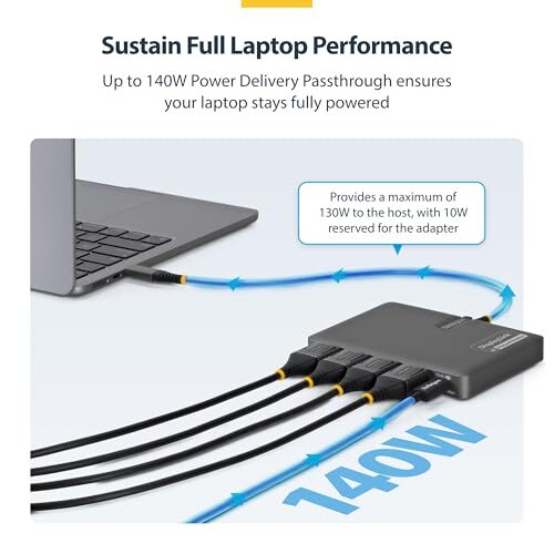 Bullet point: QUAD 4K60 WORKSTATION ADAPTER: Transform your laptop into a productivity workstation by connecting four 4K 60Hz DisplayPort monitors while charging your laptop and connecting a wireless mouse or keyboard dongle, all through a single USB-C host connection
