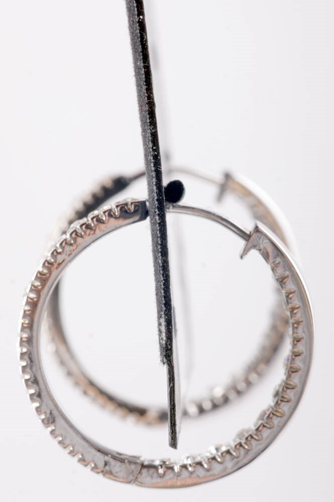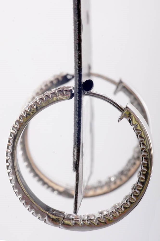 crystals across the outer face of each hoop, giving a polished, light-catching finish. The