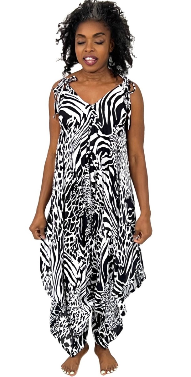 RETRO Romper Black/White Animal Print Summer Batik World St Kitts O/S