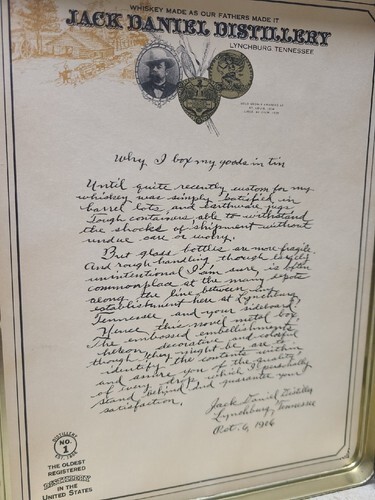 Jack Daniels Old Time Tennessee #7 Whiskey Tin Hudson Scott Sons Man Cave Deco.