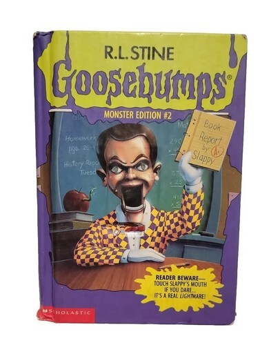 This R.L. Stine Goosebumps Monster Edition #2 Hardcover is a must-have for any fan of the series. With three books in one, this first edition novel is a vintage piece from 1996. The item features light up eyes and measures 7.8in. in length, 5.6in. in width, and 1.5in. in height, with a weight of 20.8 Oz.