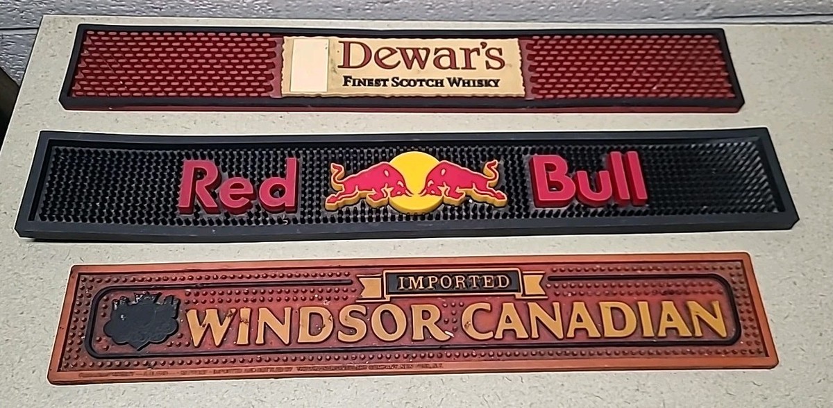 Lot of 3 Rubber Bar Spill/Drip Mats Red Bull, Dewar's, Windsor Canadian Whiskey