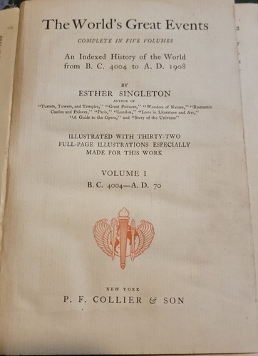 Vintage 1908 The World's Great Events Esther Singleton Volume I Hardcover Book