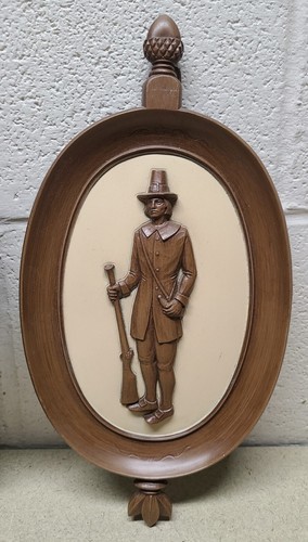Add a vintage touch to your home decor with these beautiful Syroco Puritan Man Woman Thanksgiving Pilgrim Wall Plaques. Made in the United States during the 1960s, these wall arts are perfect for collectors of vintage, retro, mid-century items. The intricate details of the pilgrim couple's outfits showcase the quality of craftsmanship and design of the past. These wall plaques are a great addition to any room, whether it's the living room, dining area, or study. They are not handmade and not modified, making them a valuable find for collectors and enthusiasts alike.