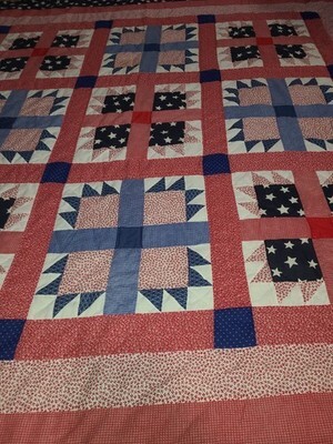 Vtg Stars & Stripes Hand Sewn Folk Art Quilt and 49 similar items