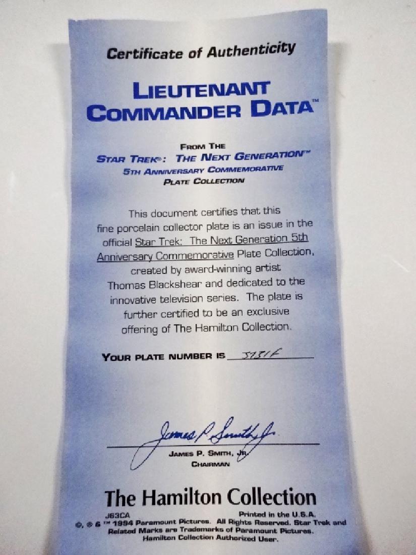 Hamilton Collection 1993 Star Trek The Next Generation Collector Plate Lt. Data