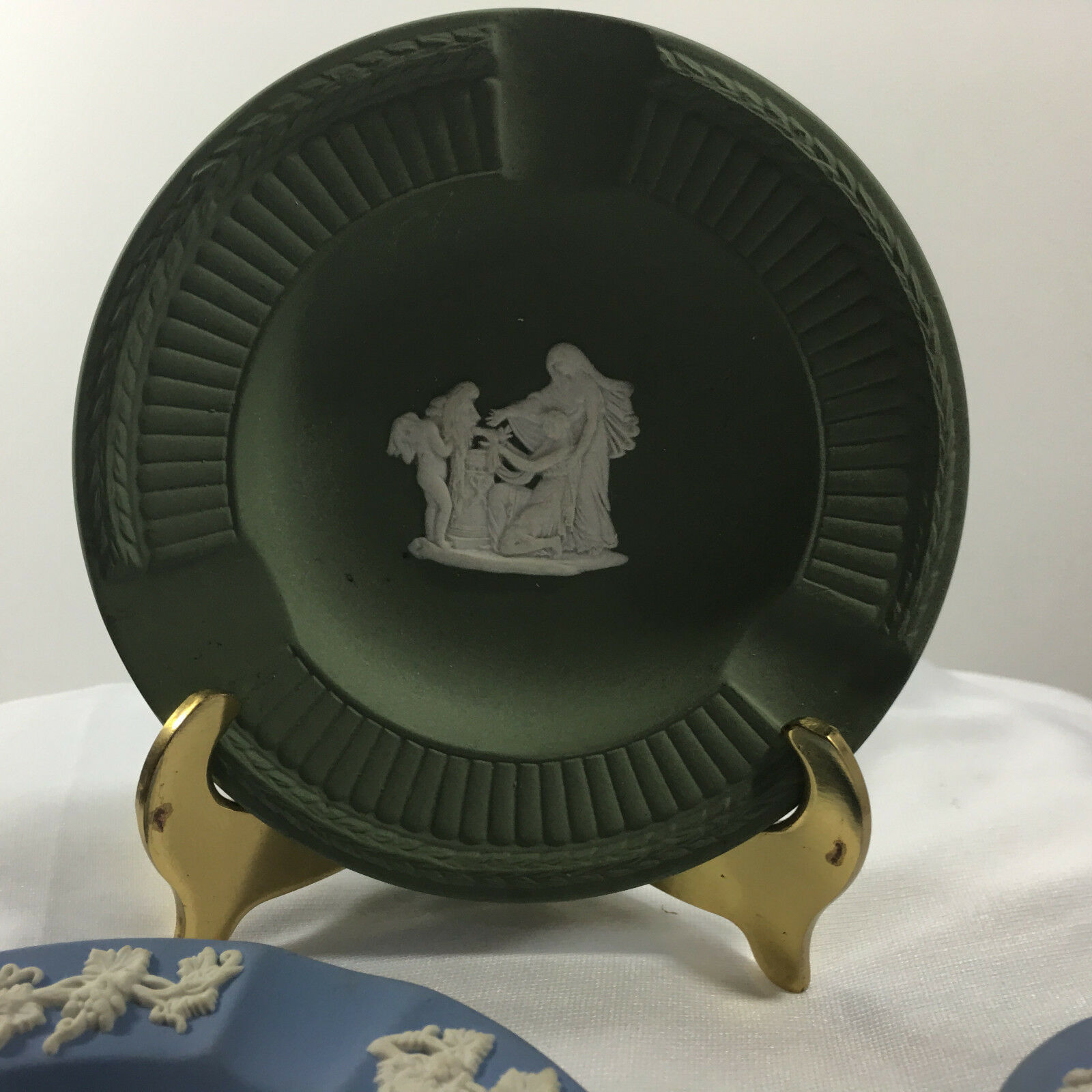 Set of 3 Wedgwood Jasperware Ashtrays depicting "Cupid as Oracle" classical figure.