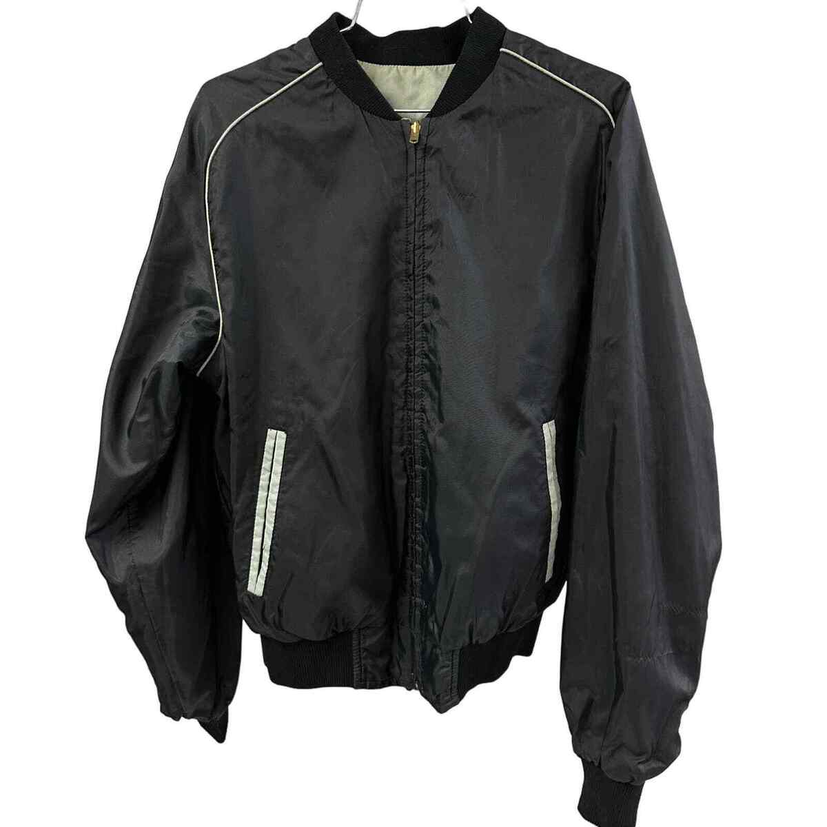80s VTG Bull Run Black & Gray Reversible Windbreaker Mens Sz M
