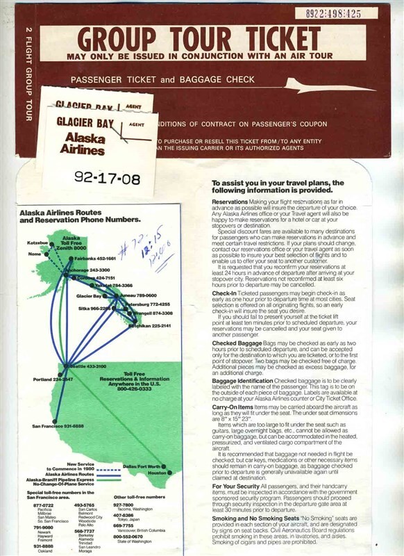 Alaska Airlines Ticket Jacket Baggage Claim Checks Ticket Gustavus Glacier Bay